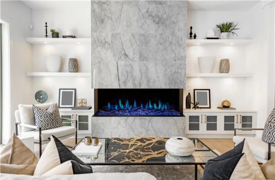 | Multi-Sided Electric Fireplace Featuring NEW HELIOVISION™ Flame Technology One Fireplace Fits All – Our Orion Linear Electric Fireplace with the Most Versatile Installation Options.