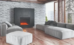 | A Stunning Zero Clearance Electric Fireplace with Square Steel Surround. Decorate any room with the beautiful and stylish ZECL-31-3228-STL-SQR Zero Clearance electric fireplace. This fireplace with an elegant square steel surround will bring a Wow! factor to any space.