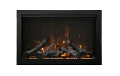 | Traditional Bespoke -Indoor / Outdoor Electric Insert featuring Thermostatic Remote, WiFi capable and a Selection of Media Options, Built-in with log and glass and black steel surround. It is a new interpretation of the classic fireplace with an emphasis on superb design, features, and quality. Choose your flame colors and effects using the latest technology, and rely on the included log set to create a realistic look. Inside the fireplace, a powerful heater warms up your space of up to 400 square feet. Concealed heater vents in the upper top of the unit allow for a truly clean appearance. Enjoy the brilliant flame of this fireplace even while the heat is off for ambiance during every season.