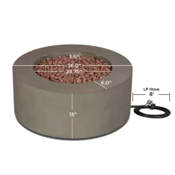 36″ Aegean Mist Gray Round Propane Fire Table With Natural Gas Conversion Kit