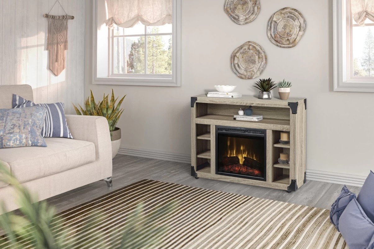 | Bring your living room to life with the Dimplex Chelsea TV Stand Electric Fireplace.