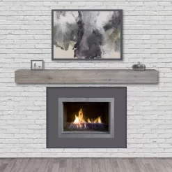 | It’s the first piece of furniture in any home. There’s nothing as warm and welcoming as a crackling fire in an open fireplace. The dancing flames can lift your spirits and melt away the most stressful day in a matter of minutes. But to truly be part of the home, a fireplace must warm our hearts even when there is no fire in the grate. Pearl does not treat the mantel as trim or molding but as a beautiful piece of furniture that is the focal point of the entire room, the emotional core. It represents roots, heritage and tradition. Furniture is arranged around it, precious treasures are displayed on it, and it provides balance and stability to the entire room. Pearl Mantels features fine furniture quality, stunning details and classic designs that will enhance any decor. 100% Acacia wood. This durable hardwood is prized for its strength, lustrous finish and varied shades. No two pieces will look the same due to the natural ribbon grain, distressing, knots and splits, all characteristics of Acacia wood. Finished with a natural weathered gray stain that showcases the beauty of the wood. Hollow in the back for ease of hanging. The ample nine inch shelf depth allows plenty of display room. Mitered hanger board assembly included for easy installation.Look for the pearl inlay that graces the right hand side of the shelf as proof that you have received an authentic Pearl Mantel.