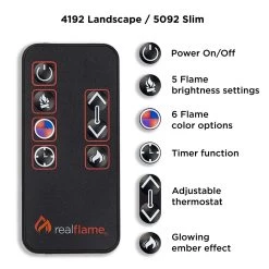 | Blending relaxing charm with modern sophistication, the Marshall electric fireplace will give your home a timeless, farmhouse design appeal. Part of the Real Flame® VividFlame Slim Series, the space-saving electric firebox mimics the look of a real, flickering fire, but does not require a chimney or vents and conveniently plugs into a standard outlet. This free-standing indoor fireplace features six flame colors, five flame brightness levels, adjustable thermostat, timer function and automatic safety shut-off. The electric fireplace insert provides supplemental heat for rooms up to 1,000 sq ft or the heater can be turned off so you can enjoy the comforting ambiance of a glowing fireplace year-round. Mantel, firebox with log set, hardware and remote control are included.