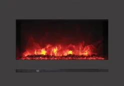 On a cold night, cozy up to this electric fireplace to relax and enjoy your favorite drink. This TV stand with an 18″ ClassicFlame electric fireplace warms up to 400 square feet and is housed in a striking two-tone display. Both the White stand and the Soft Brown cabinet doors feature a beautiful, detailed wood grain. The side cabinets feature adjustable shelves and pass-through holes, providing customizable storage for anything required in your living space. The rectangular, Gun Metal legs and Dark Brushed Nickel hardware blend well with existing dĂ©cor. On warmer nights, turn on the flame effects without activiating the heat function to enjoy a gentle rolling fire all year long. Choose between included contemporary fire glass media or a realistic log set and ember bed to showcase the beautiful flames. This TV stand accommodates most flat screen TVs up to 60” and up to 75 lbs. The 18” ClassicFlame slim line insert ships as a set with this TV stand as a small parcel.