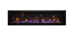 | This stylish electric fireplace will be a focal point in any room, indoor or outdoor. The Deep Series gives you a 12″ depth and multiple length options, as well as – A full Frame Viewing Area – giving you the ability to install your fireplace with your choice of finishing material built right to the glass for a “clean face” design or using the provided black metal surround. Your choice – your design!