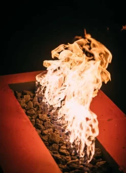| This new modern design Linear Series from Fire Pit Art features thick three sixteenth carbon steel material and your choice of powder coating color. Steel leveling casters for a solid footing, a steel cover that protects the gas burners and converts the fire pit into a table are real advantages. Life-time warranty, Stainless Steel burner, all brass keyed valve, lava rock and stainless-steel gas flex lines round out this package.