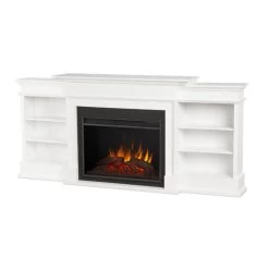 | The Torrey has a rich, built-in appearance with sliding top panels and hinged panels on each column that open to reveal adjustable shelving. Part of the Real Flame® Landscape Series, this widescreen electric firebox mimics the look of a real fire, but does not require a chimney or vents and plugs into a standard outlet for convenient set up. Features include infrared LED technology, multiple flame colors and dynamic glowing embers.