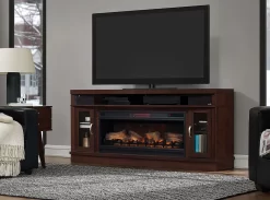 This fireplace features sliding barn style doors, kick-out hearth plank top, real wood veneer and solids, side storage cabinets with storage space. 32II040FGL Infrared Fireplace Insert Product Description (included with purchase): To add warmth and inviting ambiance to your home, add this 33″ infrared quartz electric fireplace insert to your mantel or TV stand. The infrared quartz heat helps to maintain the natural humidity in the air, resulting in comfortable heat that doesn’t dry out the room’s air. Providing supplemental zone heating for up to 1,000 square feet and showcasing stunning flame effects, this electric fireplace is sure to create a welcoming environment. Patent pending 3D flame effect technology offers a layered flame effect to create a truly realistic fire experience. The customizable 3D flame effect technology offers 125 selectable effect options to create your ideal fire, displayed on a realistic log set and ember bed. Five flame speed settings allow you to adjust from a fast roaring fire down to a gentle flickering flame, while five adjustable brightness settings allow you to select the perfect fire display for any occasion. Flame effect colors include Spectrafire, Sapphire, Amethyst, Campfire, Midnight Fire and auto cycle. The flame effects can be used with or without heat for year-round enjoyment. Change the settings easily using the control panel on the unit or with the included remote control. Use this fireplace worry-free as it is equipped with patent pending Safer Plug and Safer Sensor fire prevention technology. Safer Plug continuously monitors the temperature of the plug, and will turn off automatically if overheating occurs. Safer Sensor fire prevention technology alerts you when the heater is obstructed and will automatically shut off to prevent damage. This insert powers the LED lights on compatible TV stands and mantels. Product Dimensions: