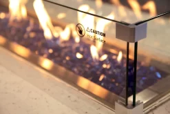| The Olympus Fire-Table collection is constructed from GFRC (Glass Fiber Reinforced Concreted) with color dyed through in through & molded off our proprietary designs. Our fire-table are designed to complete your outdoor entertaining experience featuring angled side, over 10″ of table top space for plates & beverage glasses and ambiance flame effect for adding to the mood or taking the chill off a cool night. All tables are available with match lit or Hot Surface Electronic Ignition & 5 stunning unique colors. For the media, add one of seven unique ½” Reflective glass colors, AZ Weathered Oak, or Western Driftwood. Rust and Bone Color Fire Tables Finishes are Special Order Only with an approx. 4 week lead time.