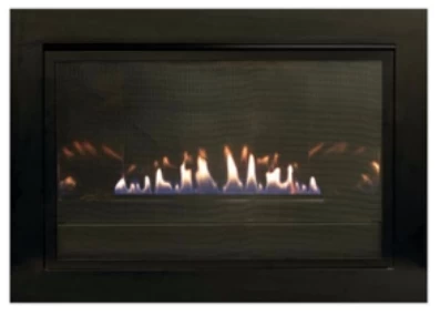 A 10,000 BTUs contemporary system is available for bedroom applications – where allowed by codes. This model is zero clearance and can be used as a fireplace insert or framed into a wall. Shown with required surround (not included). Details: